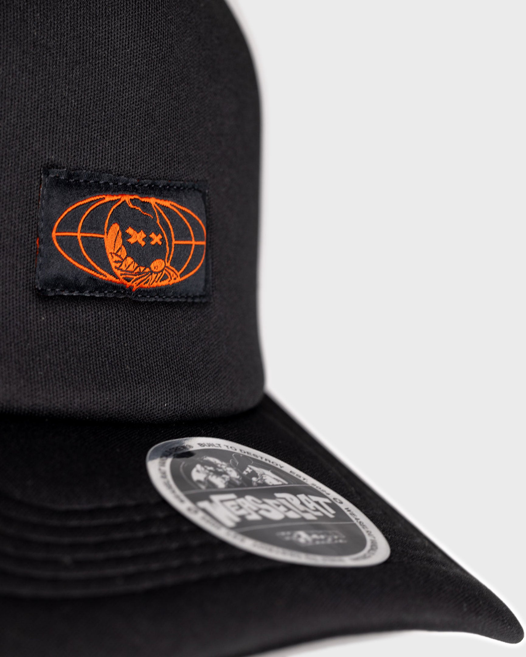Woven "Weasel Broadcast Symbol" on the front, and mesh in the back for cappilary aerodynamics. Adjustable snapback enclosure with a detailed label in the back for extra steez and if you have an issue with other hats fitting your high-capacity brain, you might be in for a treat, this hat fits larger sizes like a glove.