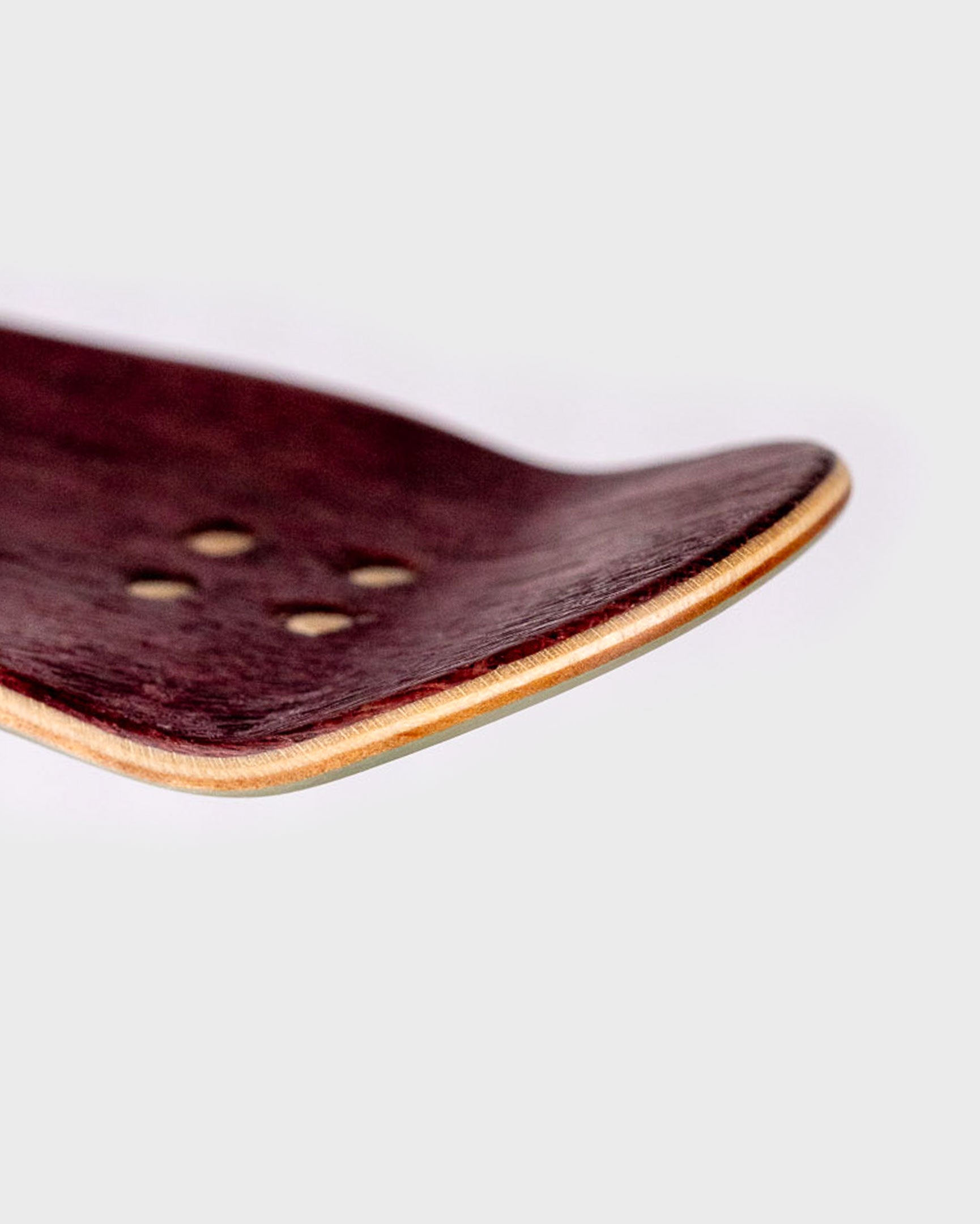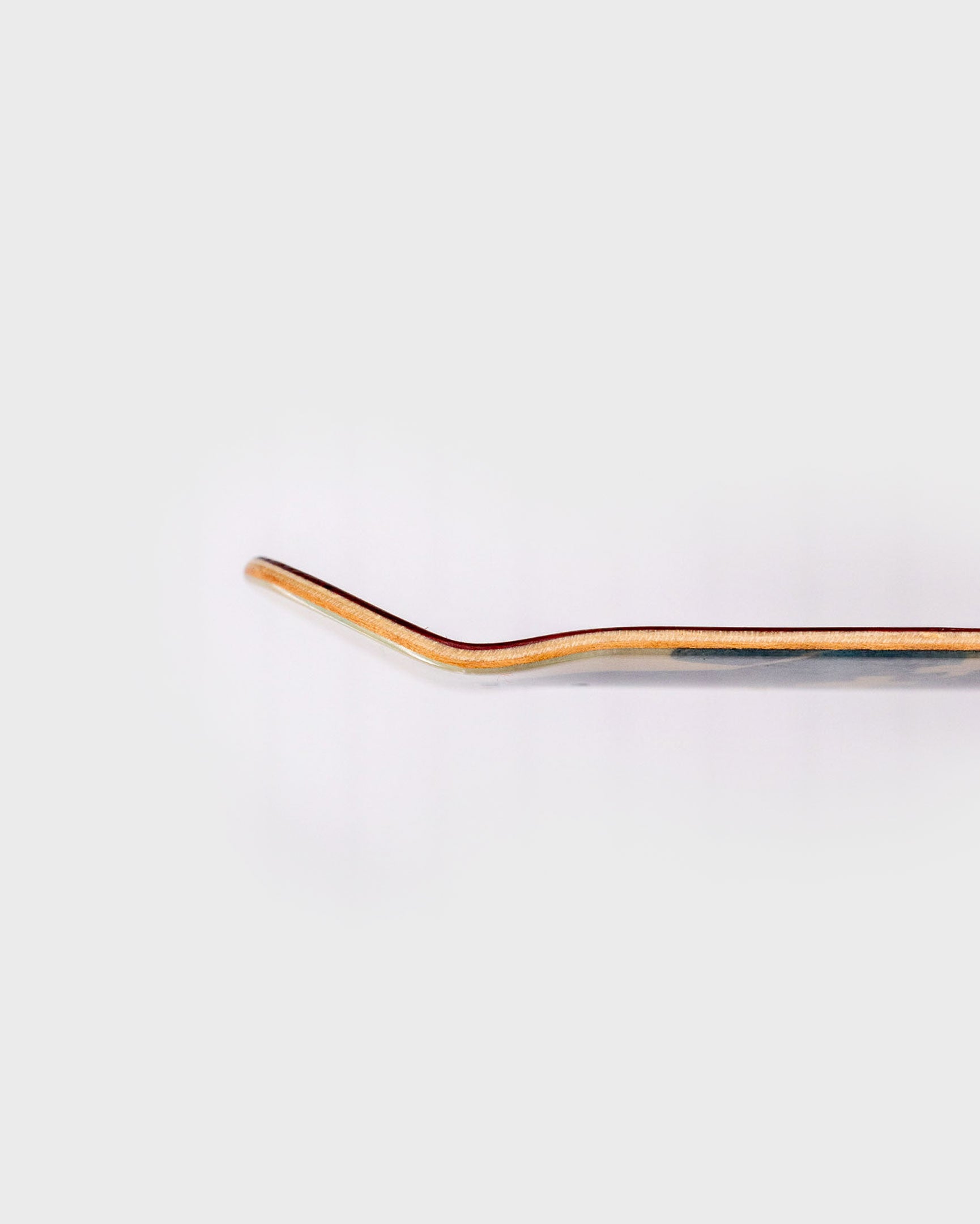 This is the gnarliest deck we make. They take a lot of extra time and effort, but the feeling of one of these is totally worth it. The ply layup is unconventional with two 45 degree maple plies sandwiched with two lengthwise plies and the G10 layer underneath. This is the formula for unrivaled pop and torsional stiffness!