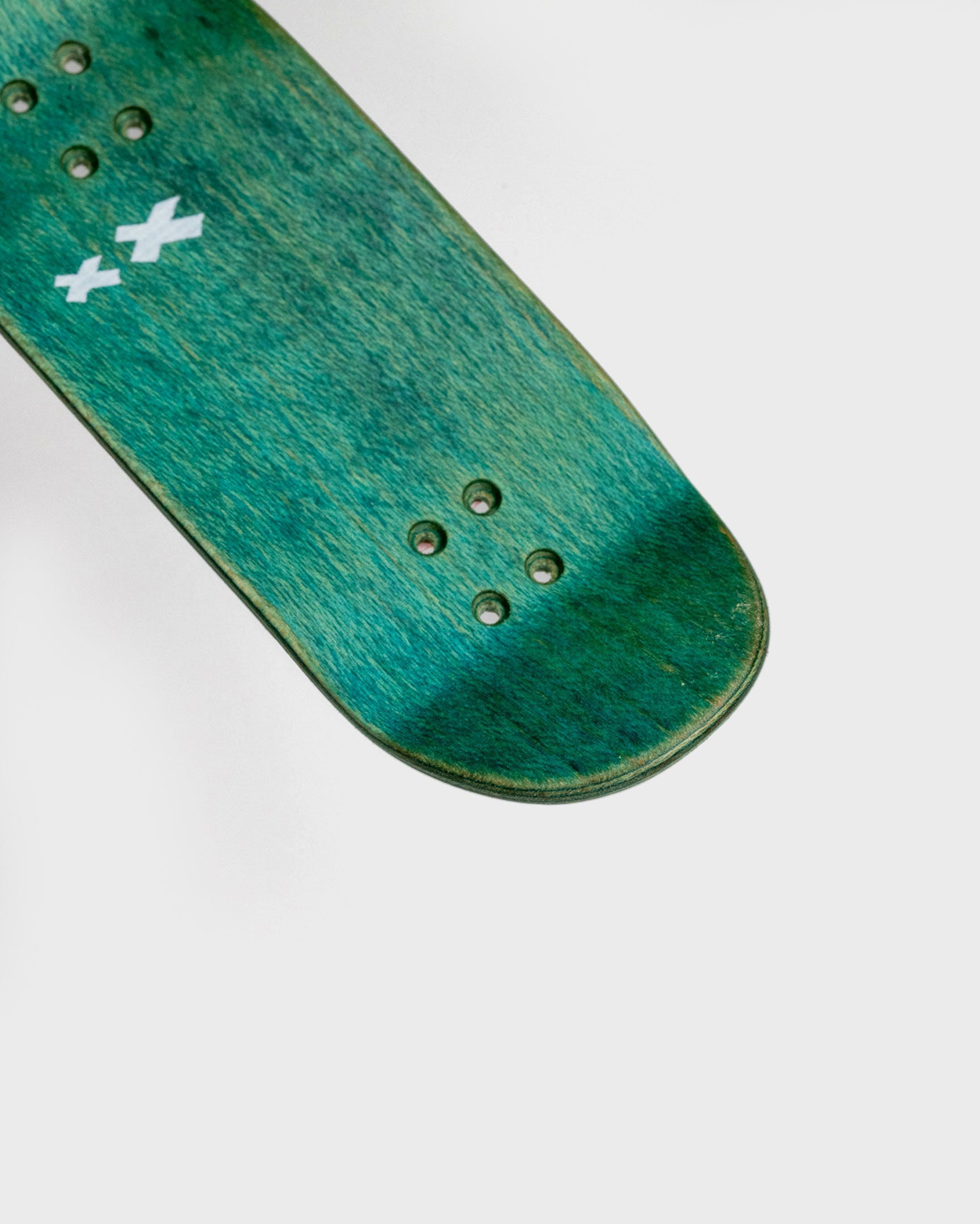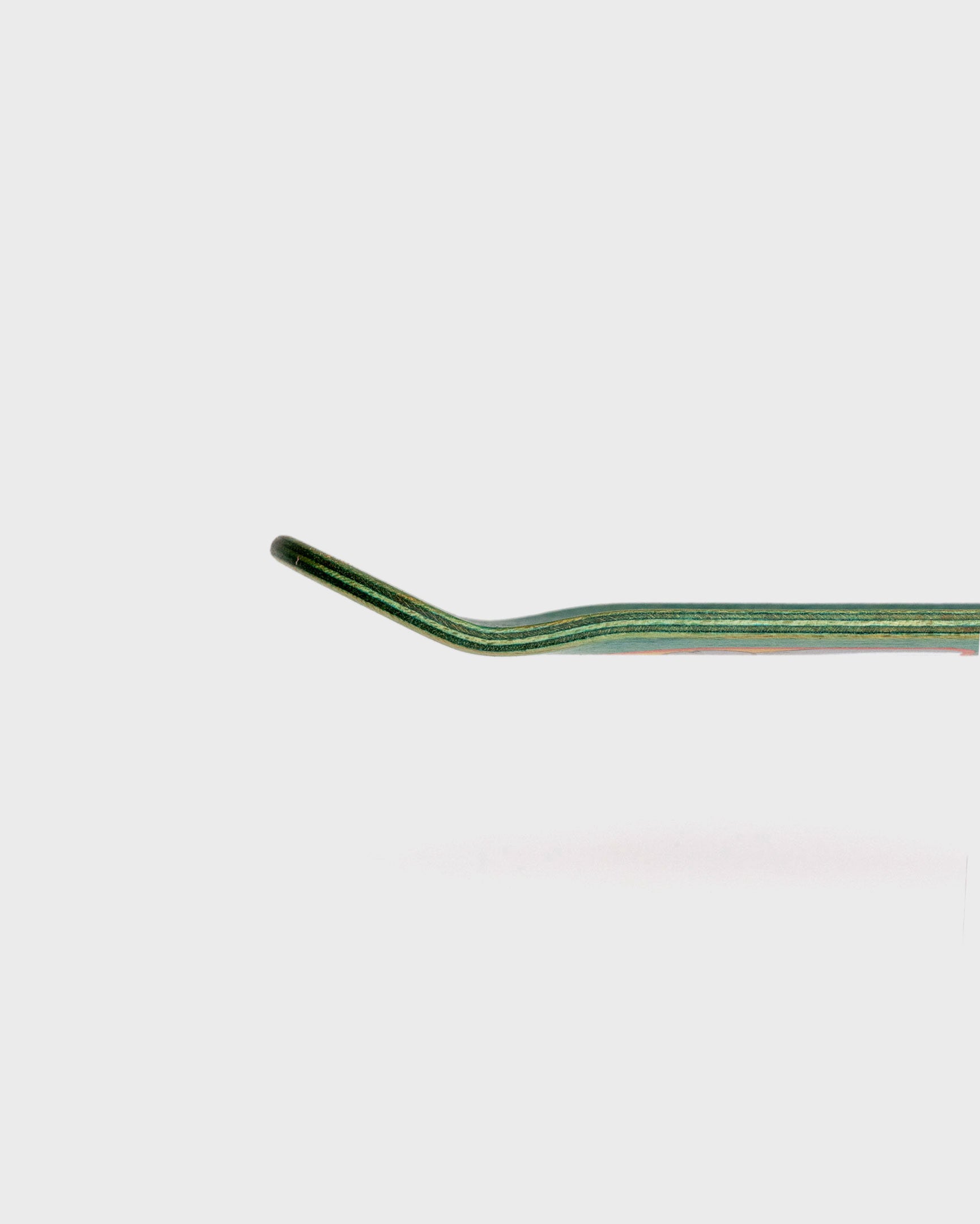 All five plies green'd out! It's like a... green cheese log! 5-ply hand-dyed maple. Full color graphic on dyed wood grain.
