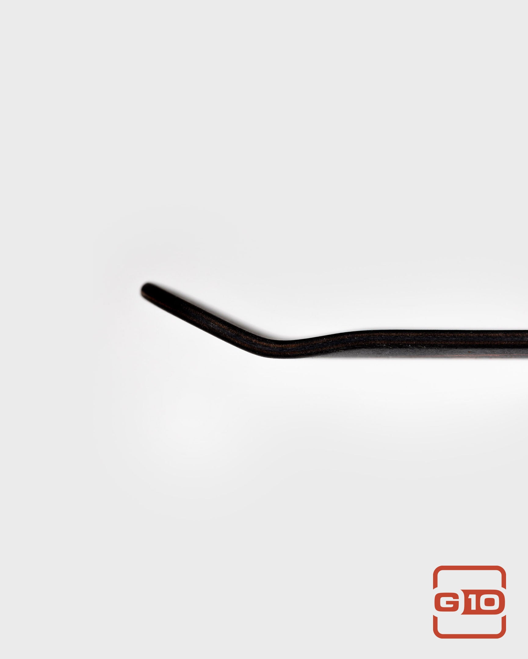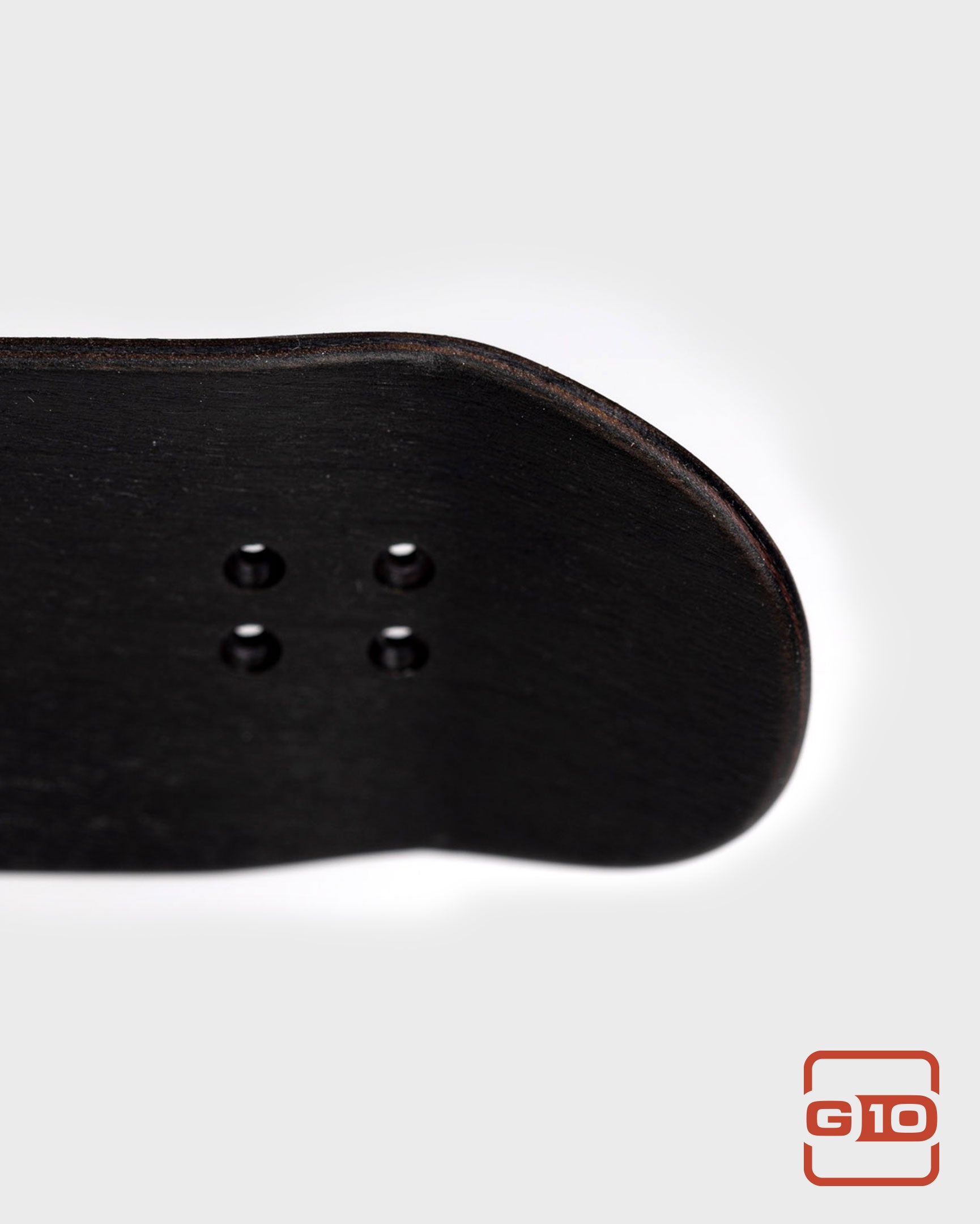 This is the gnarliest deck we make. They take a lot of extra time and effort, but the feeling of one of these is totally worth it. The ply layup is unconventional with two 45 degree maple plies sandwiched with two lengthwise plies and the G10 layer right in the middle. This is the formula for unrivaled pop and torsional stiffness! Seriously, take a deck you have, and one of these, twist em both, and feel the unrivaled nastiness of the G10.