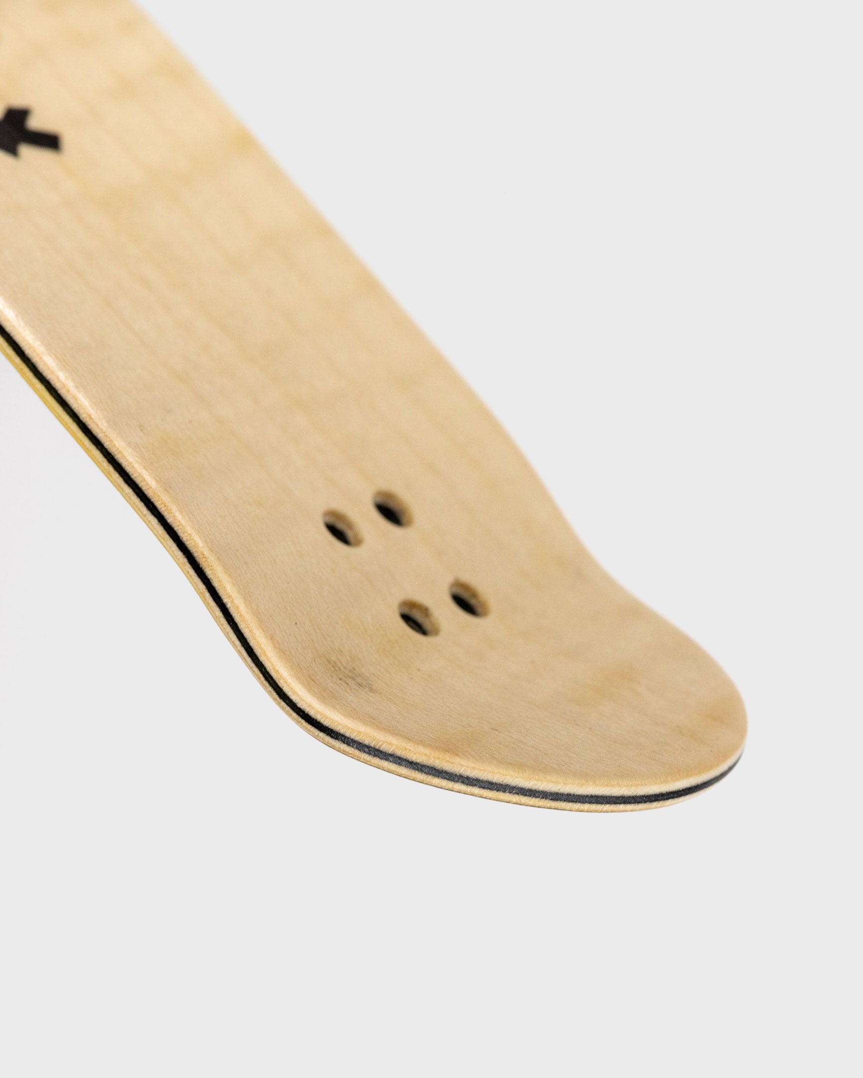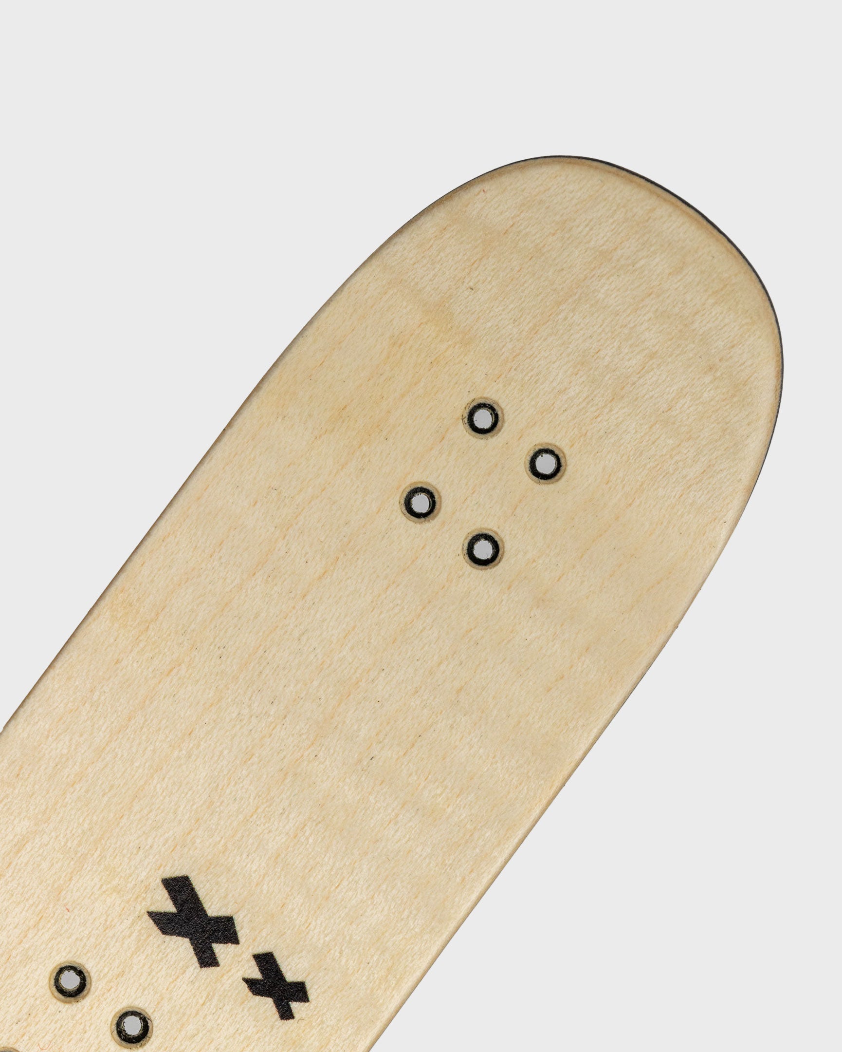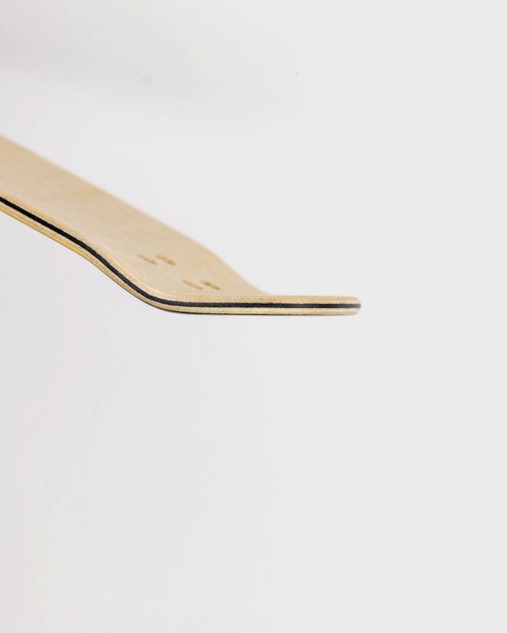 This fingerboard deck is V2 of our classic inspired street shape with slightly squared kicks for perfect grind lock-in. Not quite an egg or football, but a little bit of taper on the kicks for a unique feel. Slightly steeper and longer nose. This shape is perfect for ledge/rail tech enthusiasts.