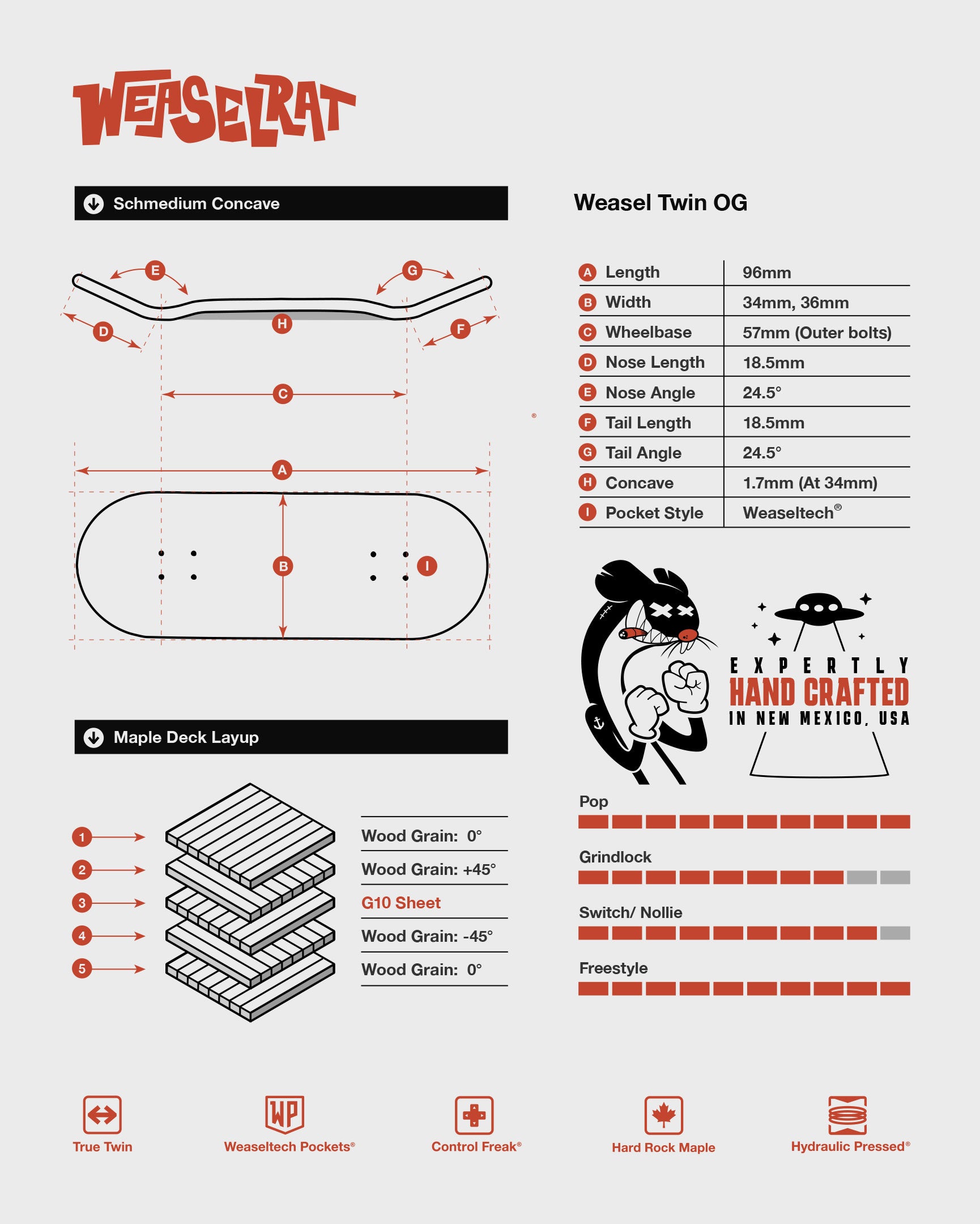 This fingerboard deck is a twin POPsicle inspired shape with switch/nollie friendly kicks and a slightly lower concave. This shape is perfect for skating and filming lines with shuvits/varials/hardflips, etc.