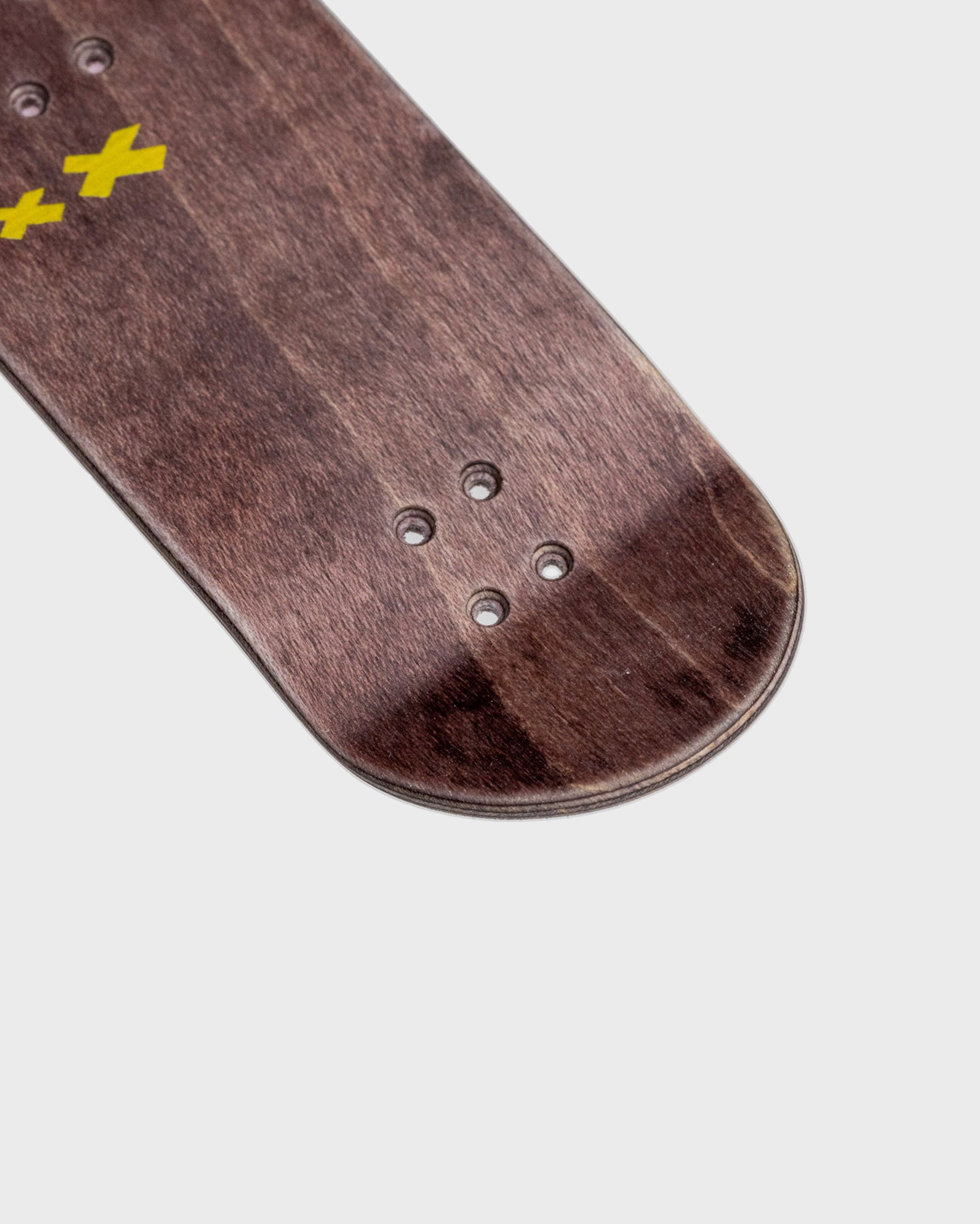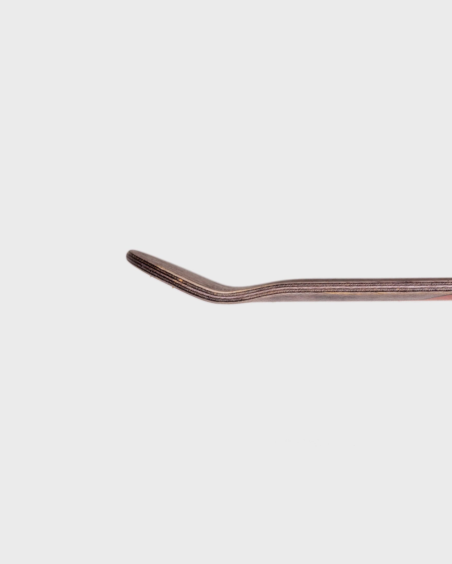 All five plies puce'd out! Puce means "flea color." It's like a... cheese log with fleas all over it! 5-ply hand-dyed maple. Full color graphic on dyed wood grain.