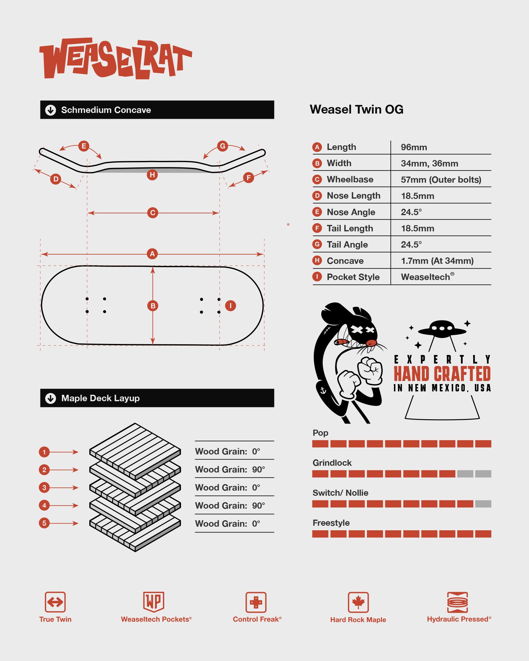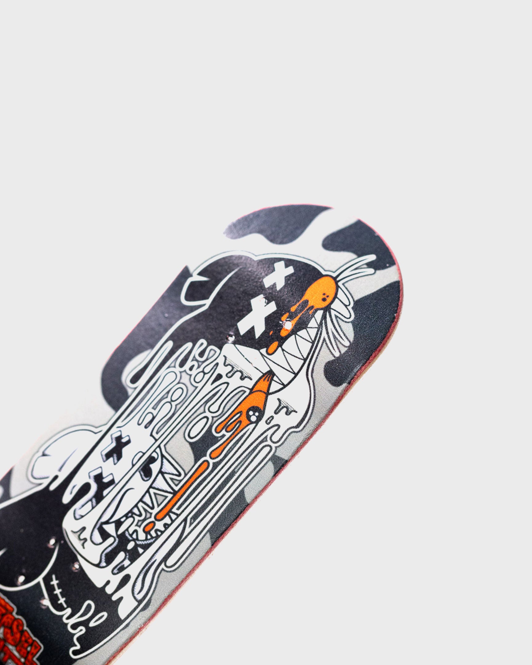 This fingerboard deck is a twin POPsicle inspired shape with switch/nollie friendly kicks and a slightly lower concave. This shape is perfect for skating and filming lines with shuvits/varials/hardflips, etc.