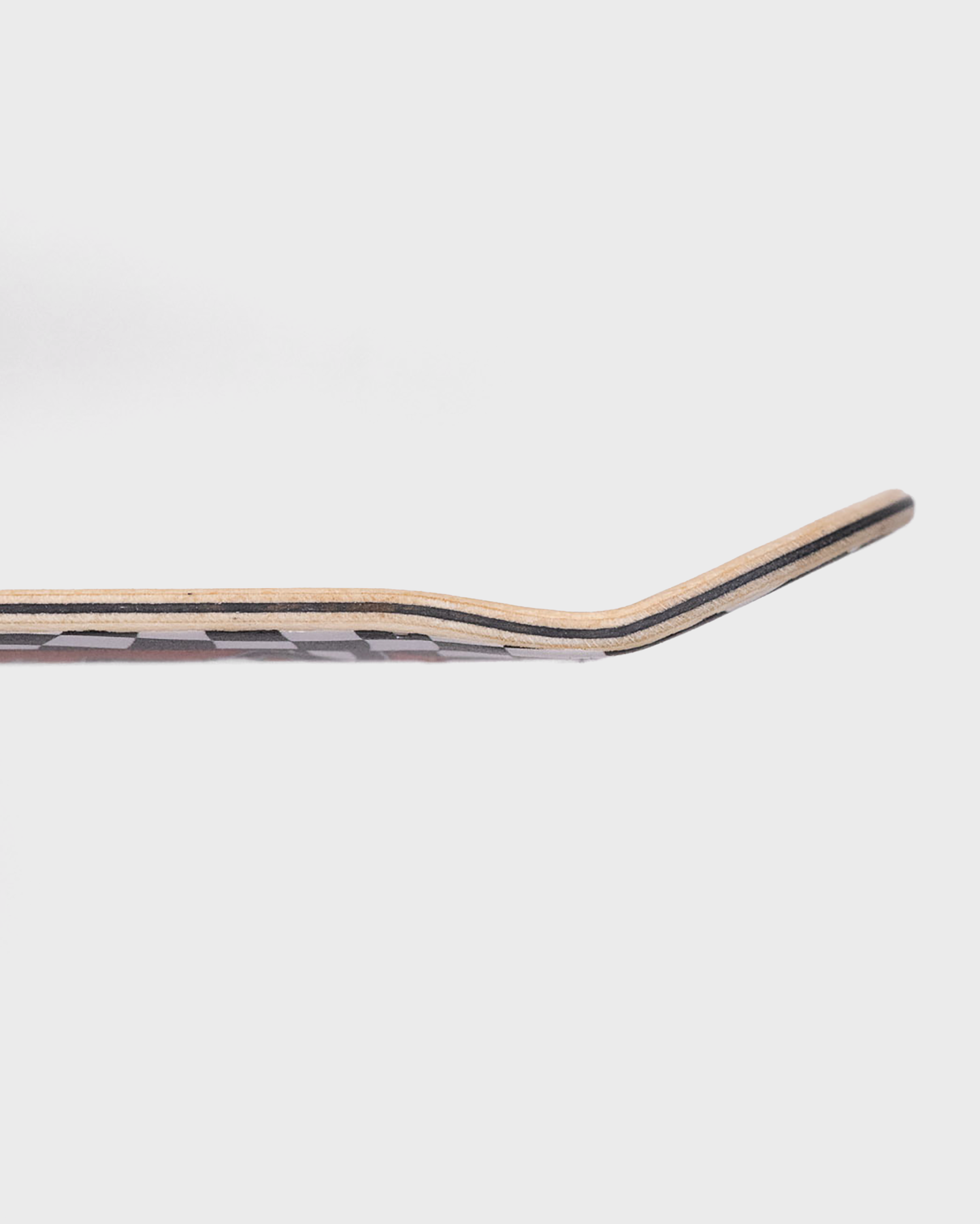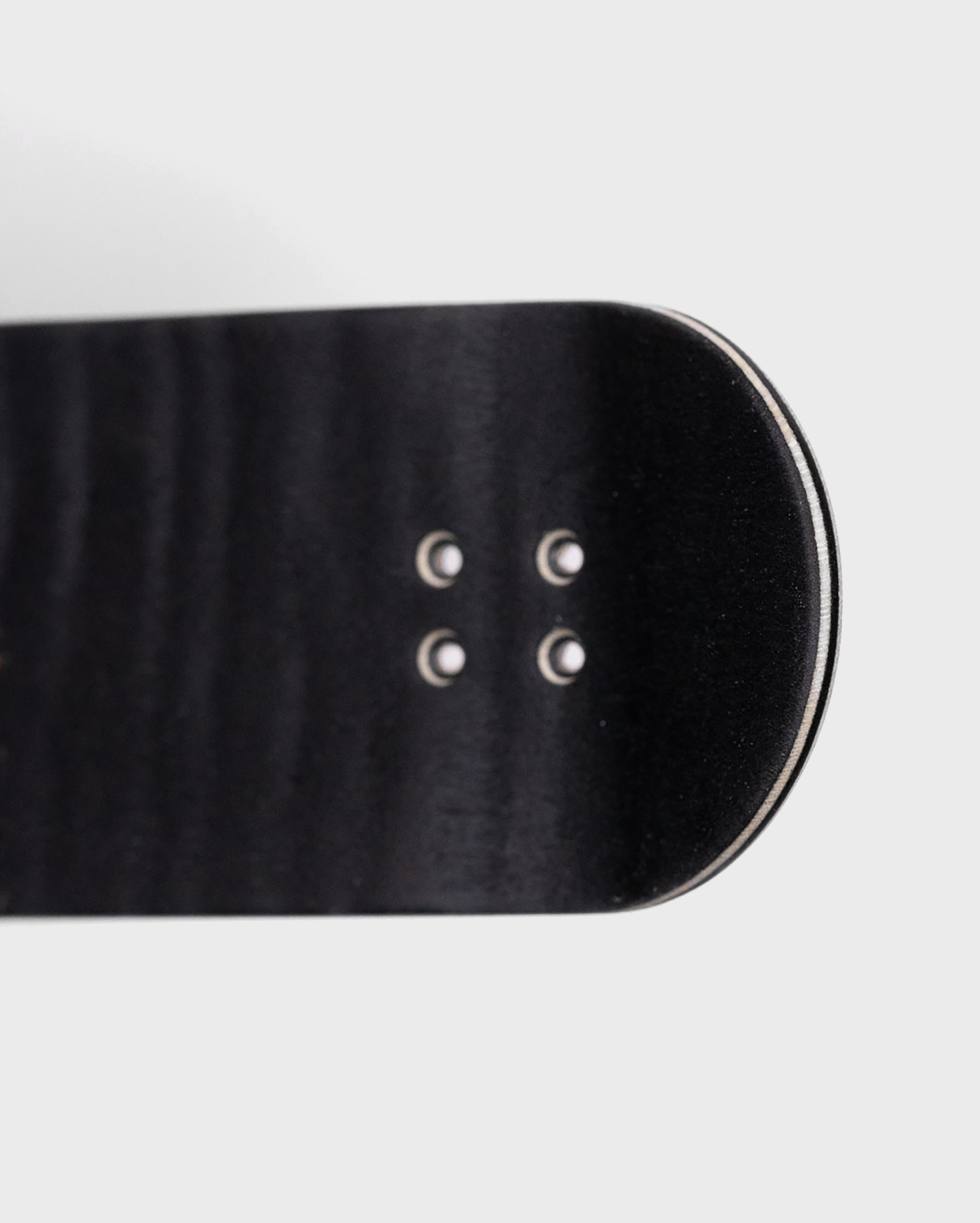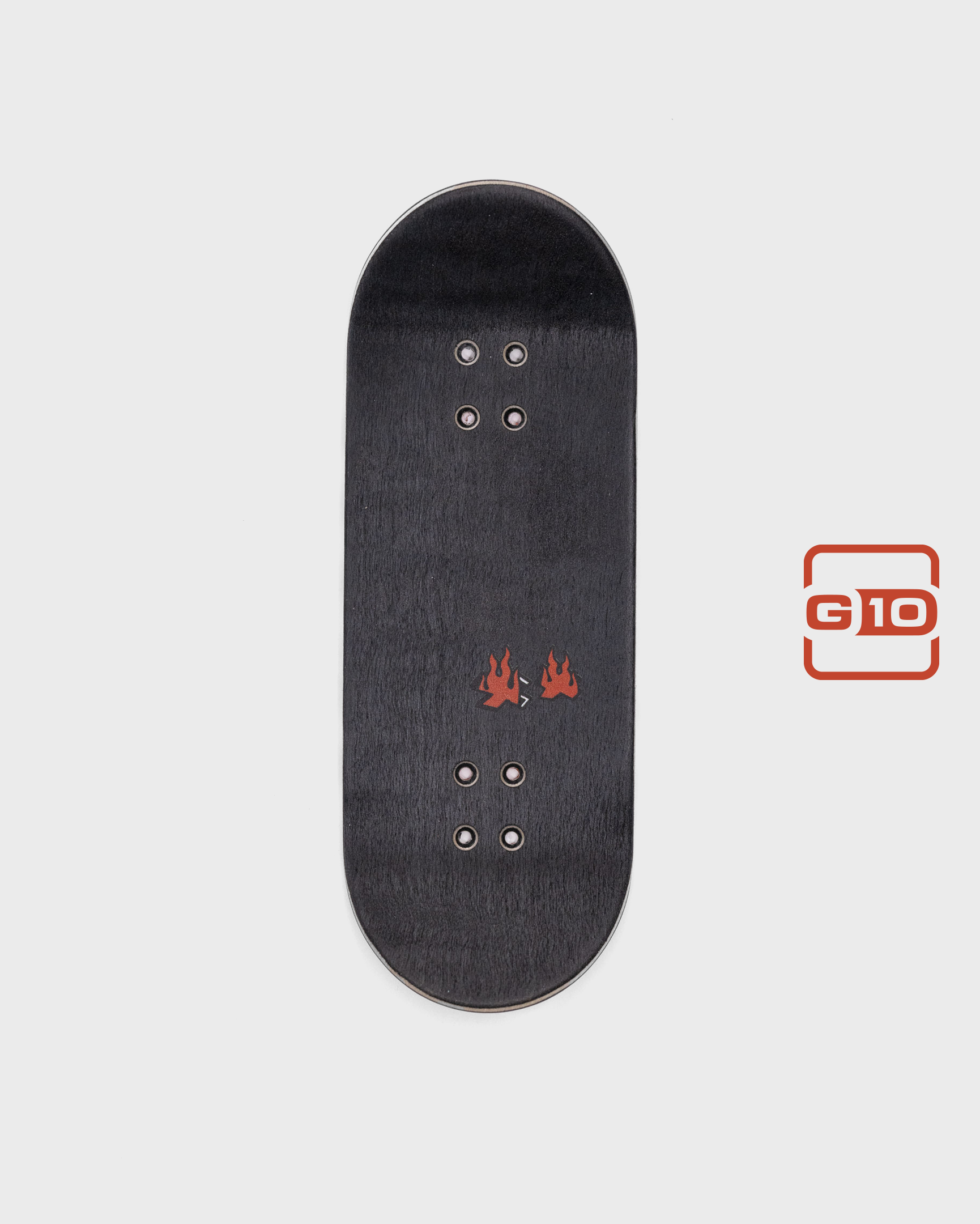 This is the gnarliest deck we make. They take a lot of extra time and effort, but the feeling of one of these is totally worth it. The ply layup is unconventional with two 45 degree maple plies sandwiched with two lengthwise plies and the G10 layer right in the middle. This is the formula for unrivaled pop and torsional stiffness! Seriously, take a deck you have, and one of these, twist em both, and feel the unrivaled nastiness of the G10.